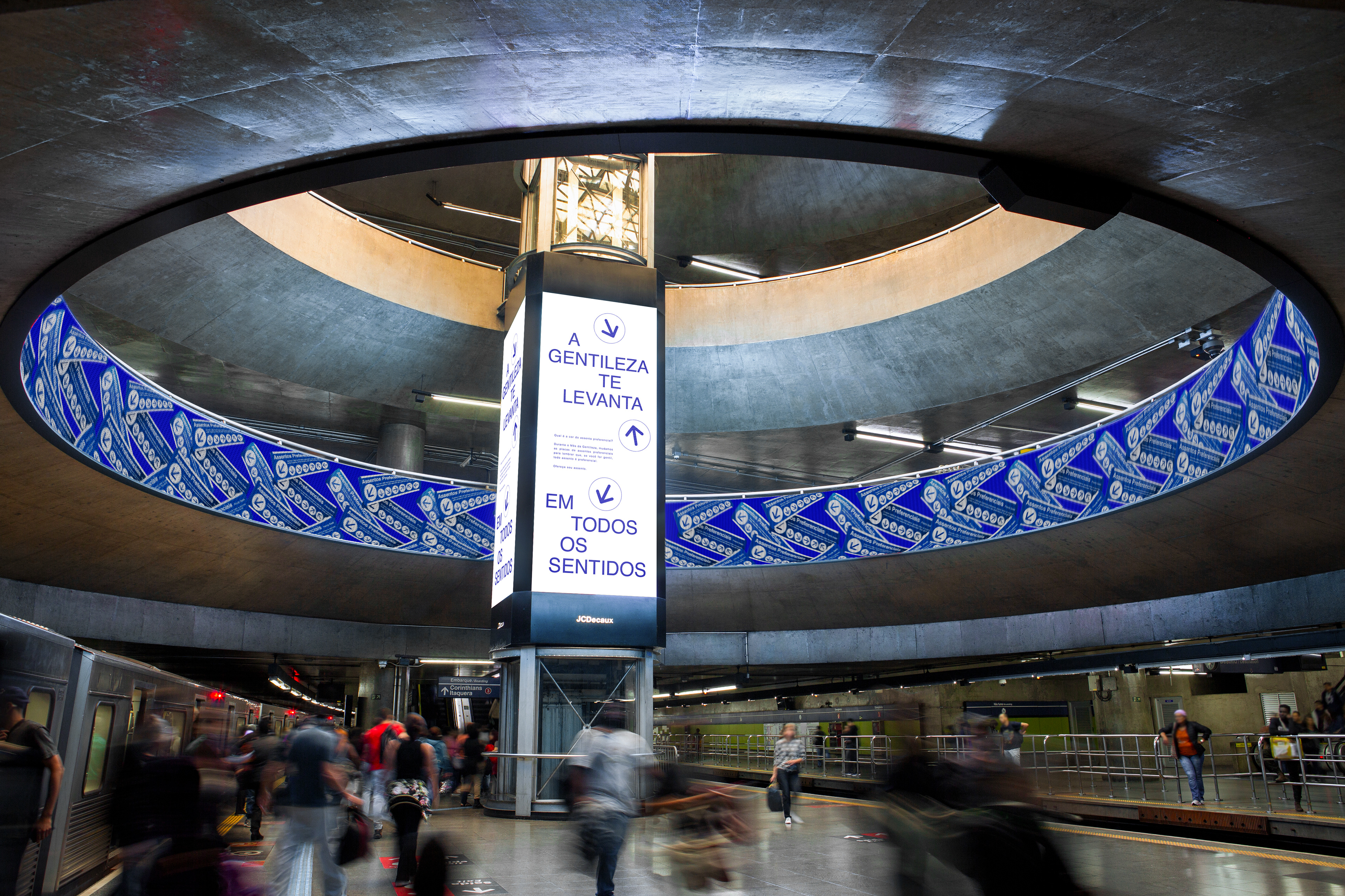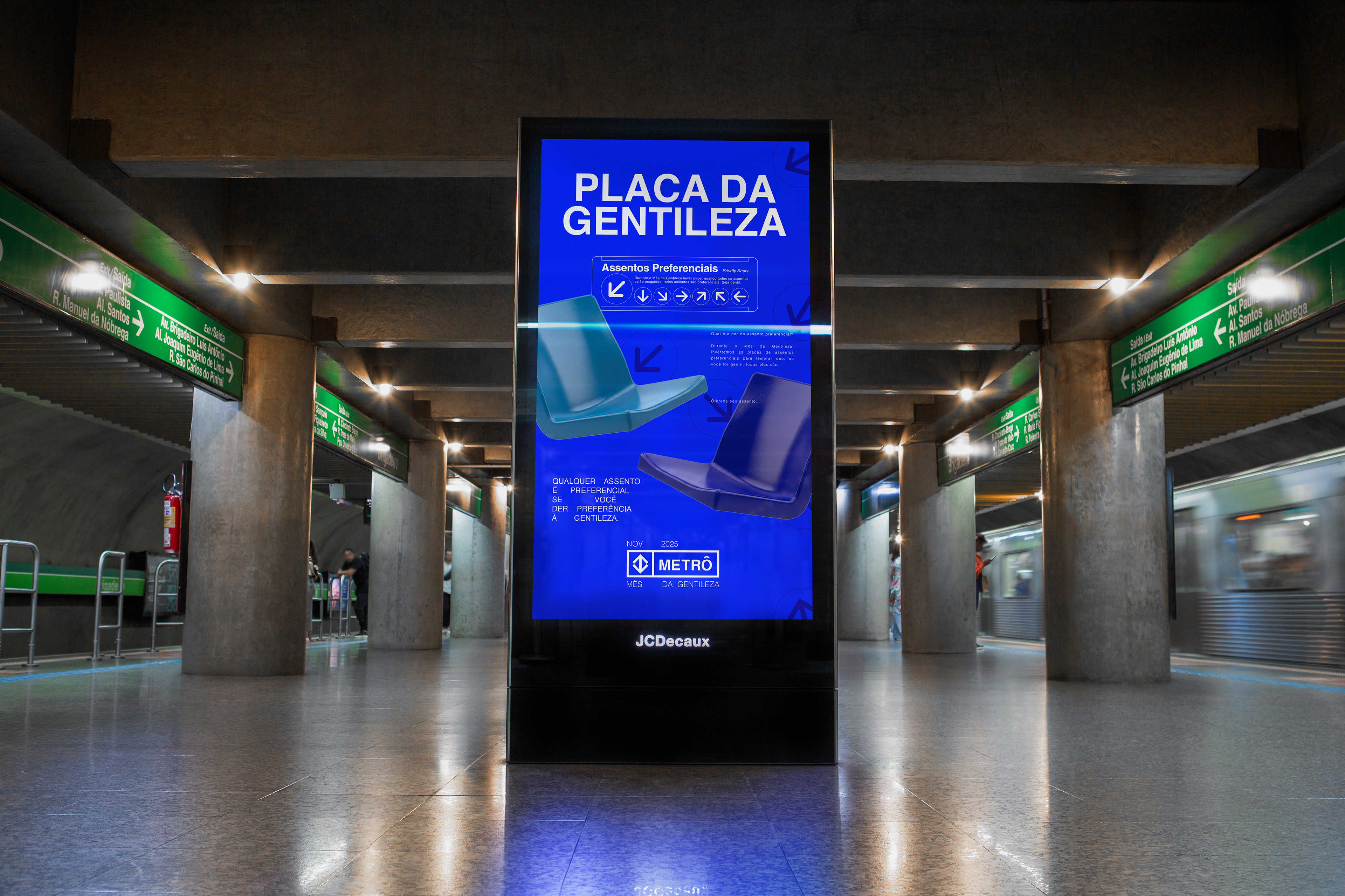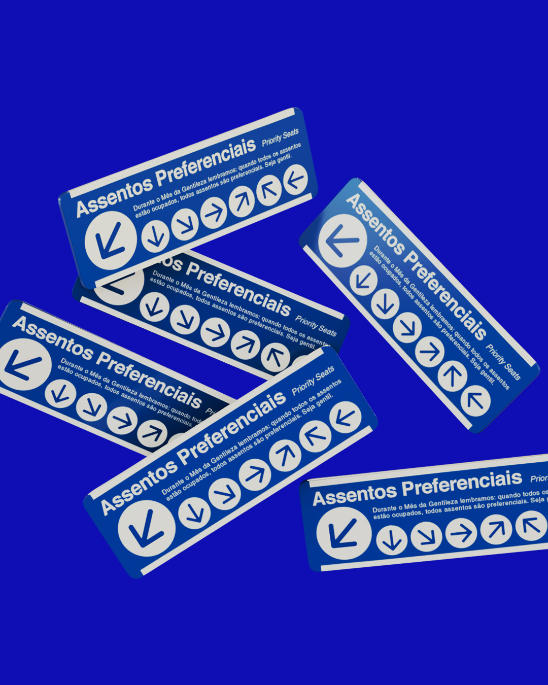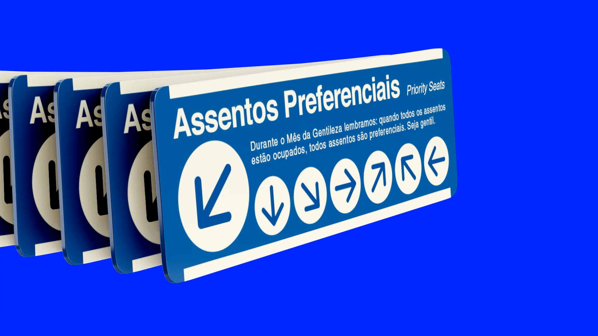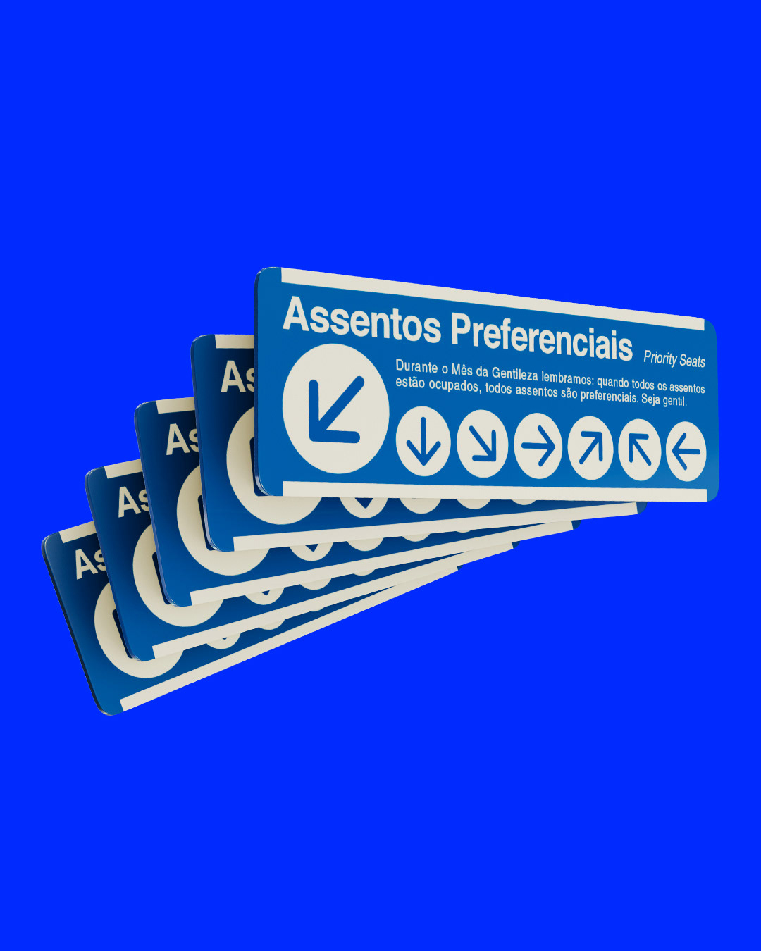 No Dia Mundial da Gentileza, convidamos milhões de passageiros a repensarem atitudes cotidianas dentro dos vagões invertendo a lógica dos assentos preferenciais: placas tradicionais dão lugar a novas sinalizações na cor dos assentos comuns e apontando em todas as direções.